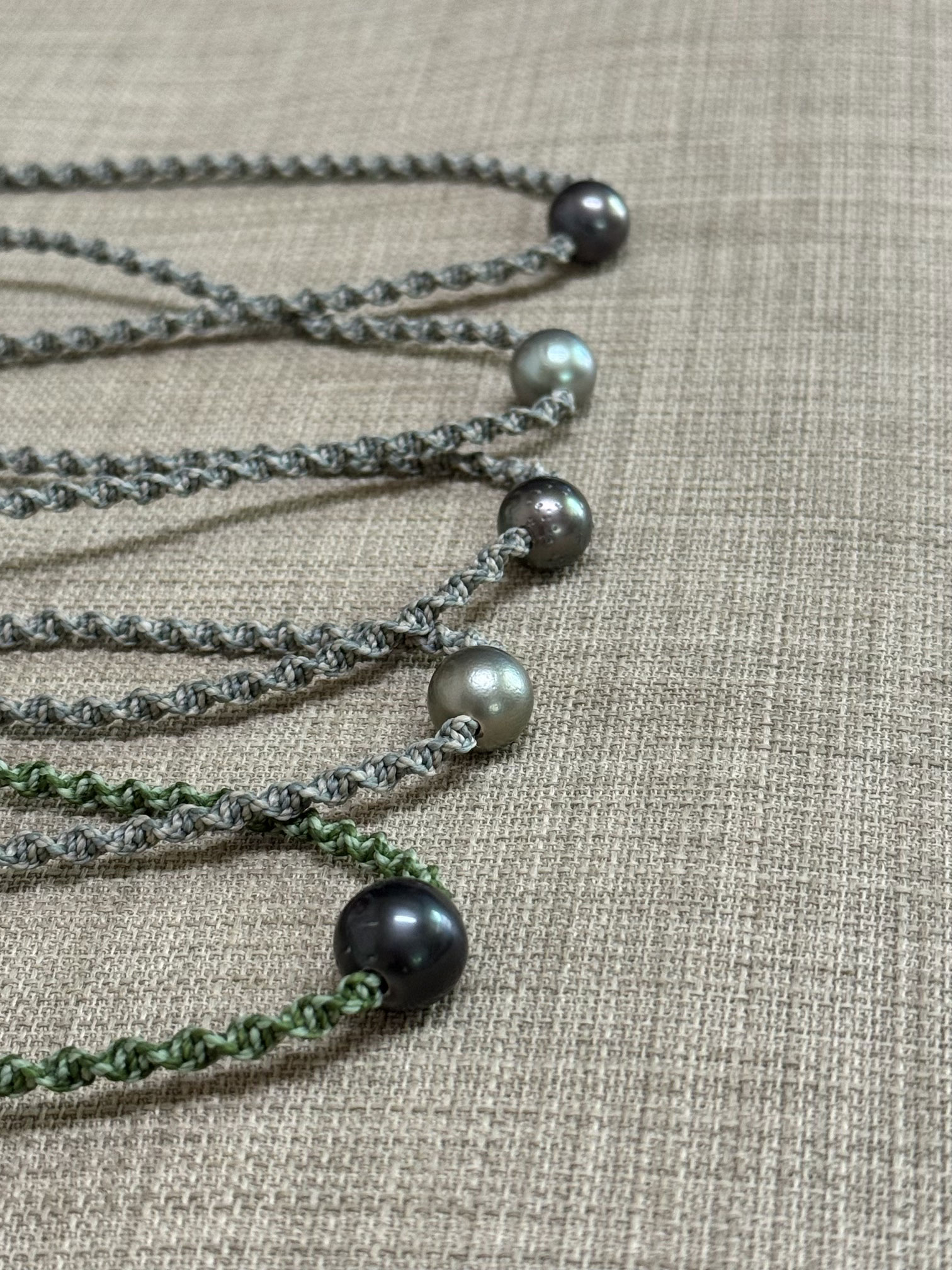 1―P(パール)-タヒチアンパールをチョーカー、ブレスレット、アンクレットのいずれかに編んで仕上げます。