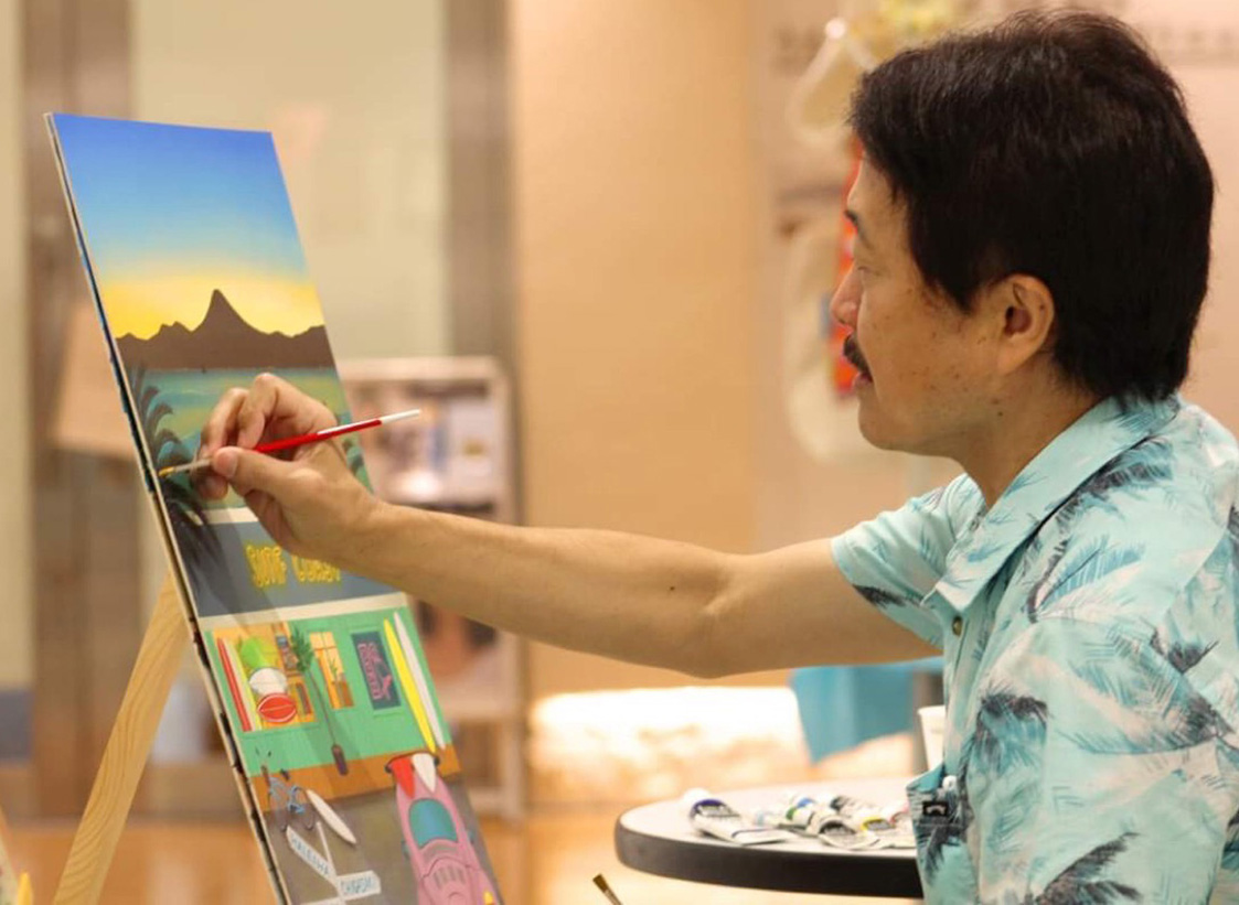 1980年代から‘古き良きハワイ’をテーマに写真を撮り続け、 1991年、マウイ島ラハイナで見た幻想的で美しいフルムーンに 魅せられたのをきっかけに絵画の世界に入る。