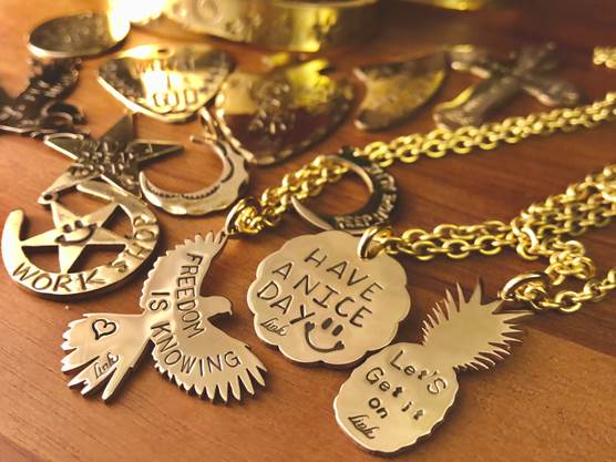 ブラス(真鍮)というゴールドカラーの金属をつかって「チャームやバングル」を作る体験ワークショップになります。