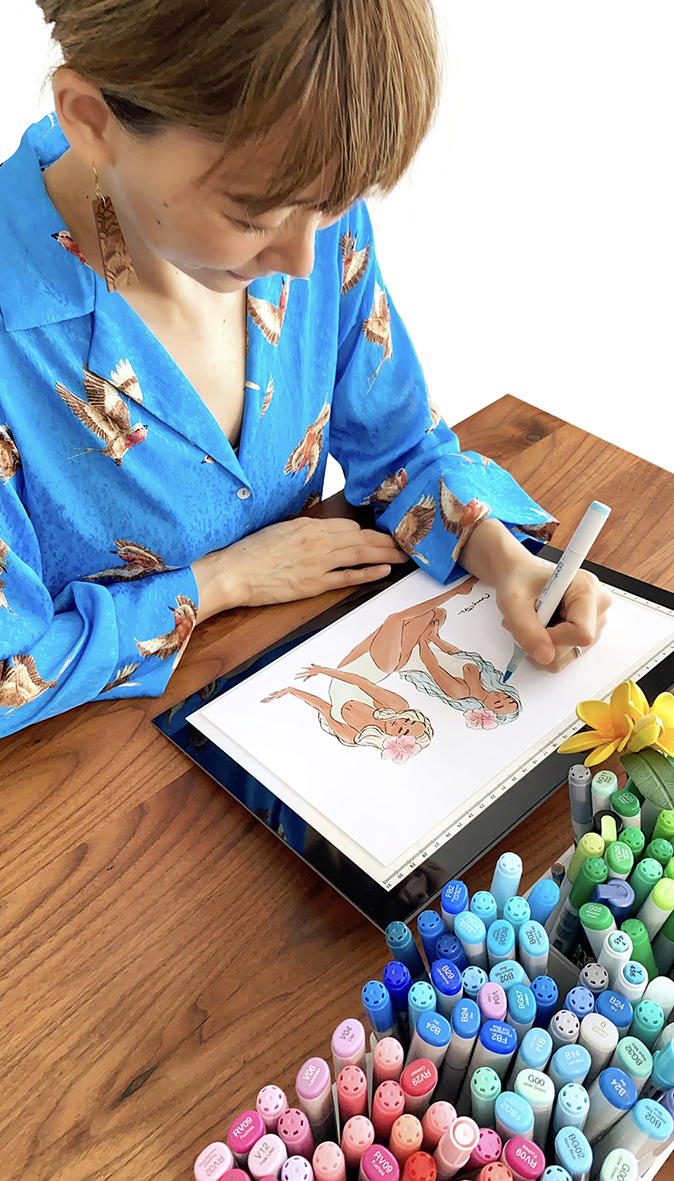 横浜生まれ/女子美術短期大学 情報デザイン科 卒業。南国の女性と植物に魅せられてオリジナルアートを展開中。