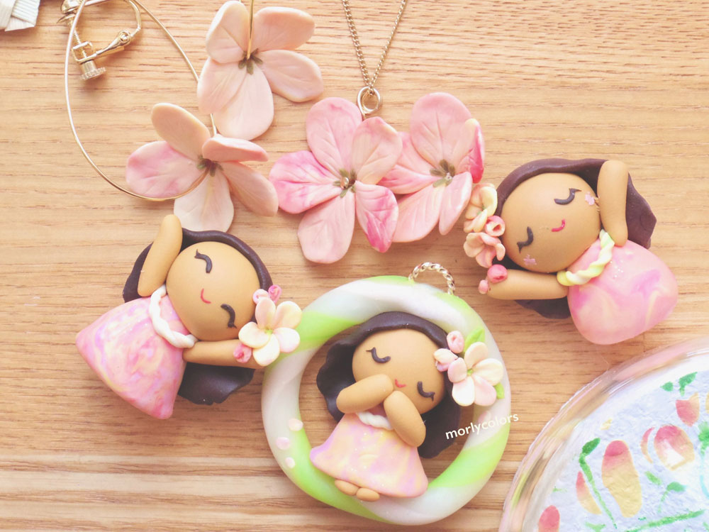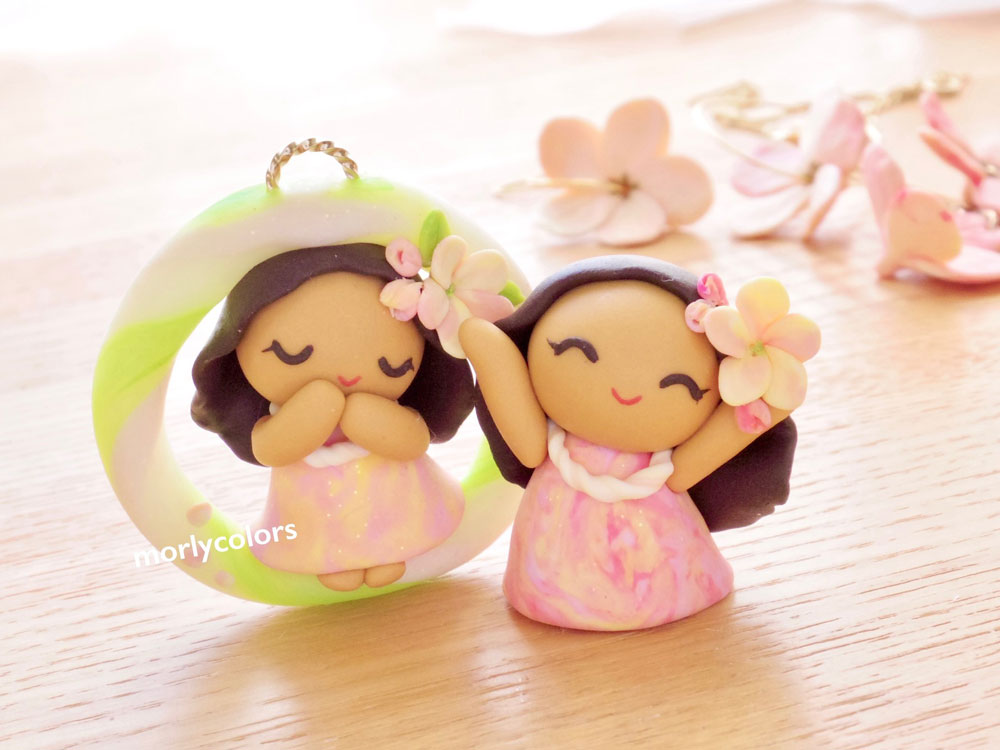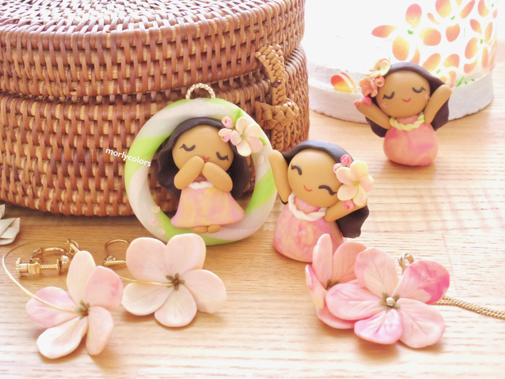 1999年出会ったhulaをきっかけに、気持ちや自然を表現するhulaをかたちにしたい思いで、クレイアートによるフラドールを考案。2006年Morlycolorsをwebにて開設。